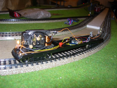 Etwas näher... Fazit: Die Lok läuft einwandfrei und der Decoder reagiert normal. Ebenfalls wird die Märklin Bremsstrecke erkannt. Bei Fahrstufe 8 aufwährts bleibt die Geschwindigkeit stehen. Fazit: Mit den Dioden wird eher am falschen Ort gespart. Trotz langem und mühsamen versuchen die Decodereinstellungen zu optimieren fährt die Lok nicht zufriedenstellend. Die Alternative währe die Feldspule permanent unter Strom zu setzen. Denke dass es mit einem Dauermagnet perfekter und kostengünstiger ist. |